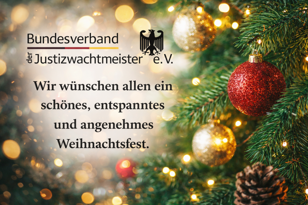 Wir wünschen euch und euren Familien ein frohes, ruhiges und besinnliches Weihnachtsfest, Zeit zur Erholung und einen guten Start in ein gesundes neues Jahr. Wir freuen uns auf die weitere gemeinsame Zusammenarbeit und darauf, den Justizwachtmeisterdienst auch künftig gemeinsam voranzubringen.
